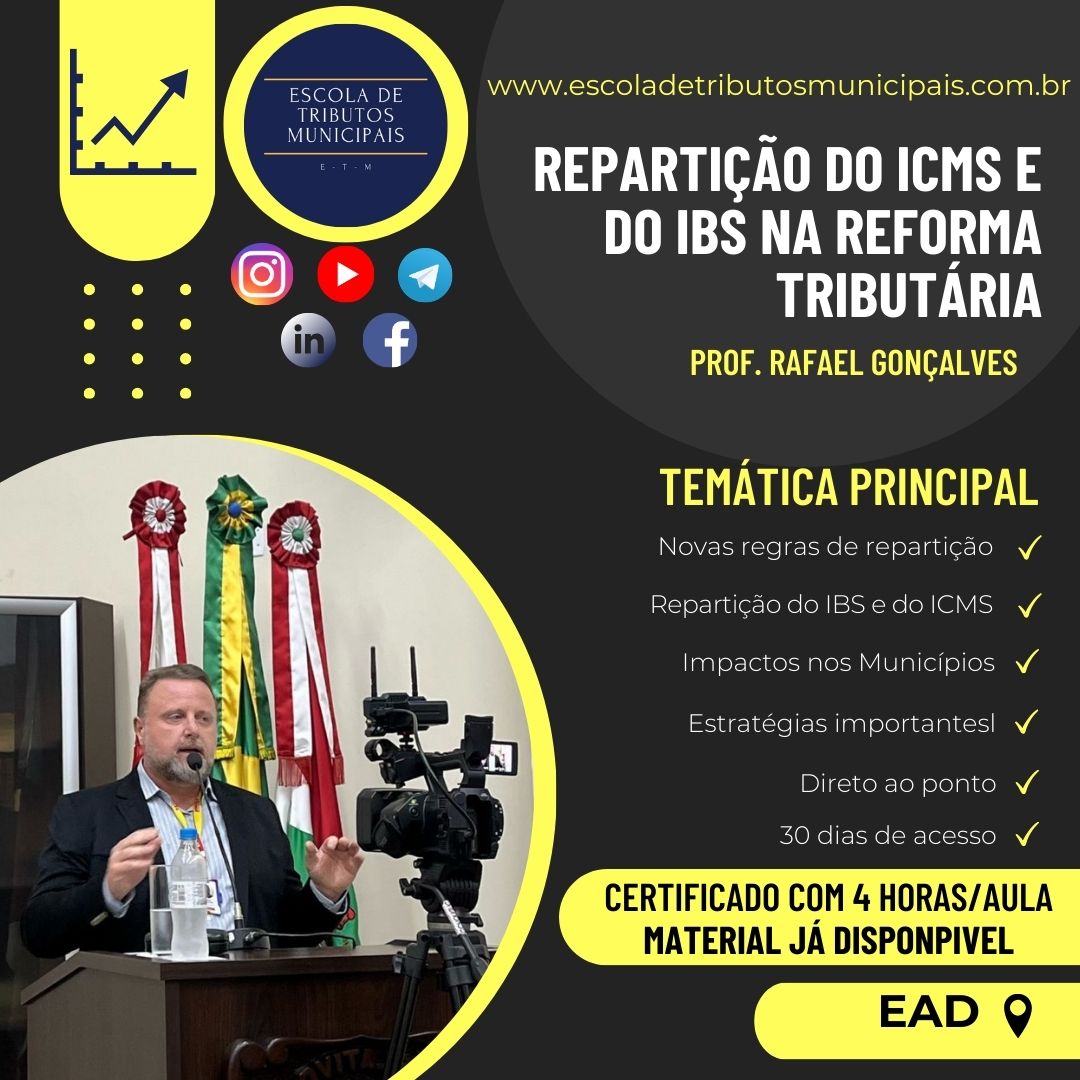 Pensando nisso a Escola de Tributos Municipais elaborou um curso rápido e direto ao ponto sobre os principais impactos que a reforma tributária poderá trazer aos Municípios em relação as regras de repartição do IBS e do ICMS.